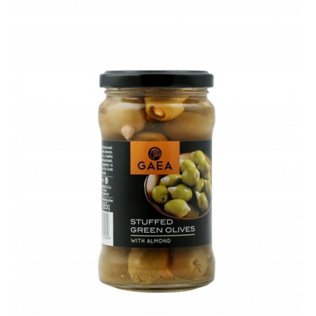 Nadziewane ręcznie, sztuka po sztuce zielone oliwki Gaea. Każda zawiera łuskany migdał. Kruche i łagodne, są świetnym sposobem na urozmaicenie prostych dań z ryb. Dodają smaku i koloru każdemu posiłkowi. Spróbuj owinąć je w kawałek ciasta na pizzę i zapiec. W ten sposób stworzysz oryginalne, greckie „meze”.
