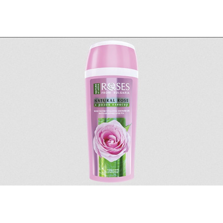 Rewitalizujący żel pod prysznic o delikatnym działaniu z naturalną wodą różaną - prawdziwy zmysłowy eliksir ze wspaniałym, urzekającym aromatem.